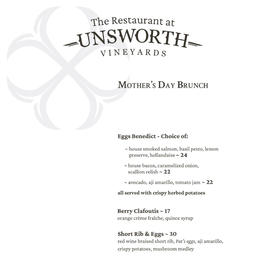 Do you have Mother's Day plans yet? Don't worry, The Restaurant at Unsworth Vineyards has you covered. Reservations are open for Mother's Day Brunch. Chef Dan Bain and team have spins on classics both savoury and sweet to please mom on her special day.
